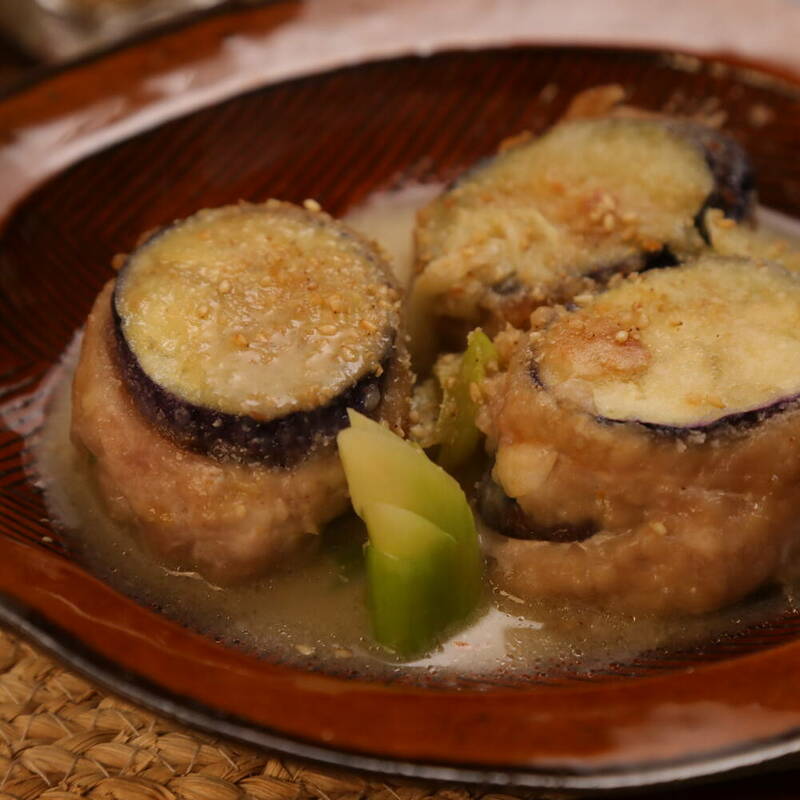 なすは1cm厚さの輪切りに切る(合計12枚作る)。長ねぎは半分は斜め薄切りにし、残りは粗く刻む。