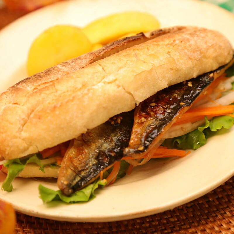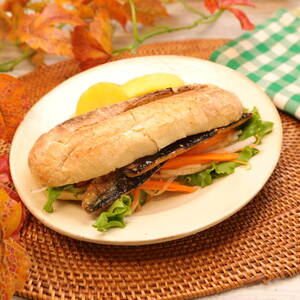 ソフトフランスパンは切り離さない程度の切り込みを入れておく。