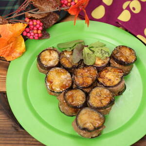 なすは1cm厚さの輪切りに切る。