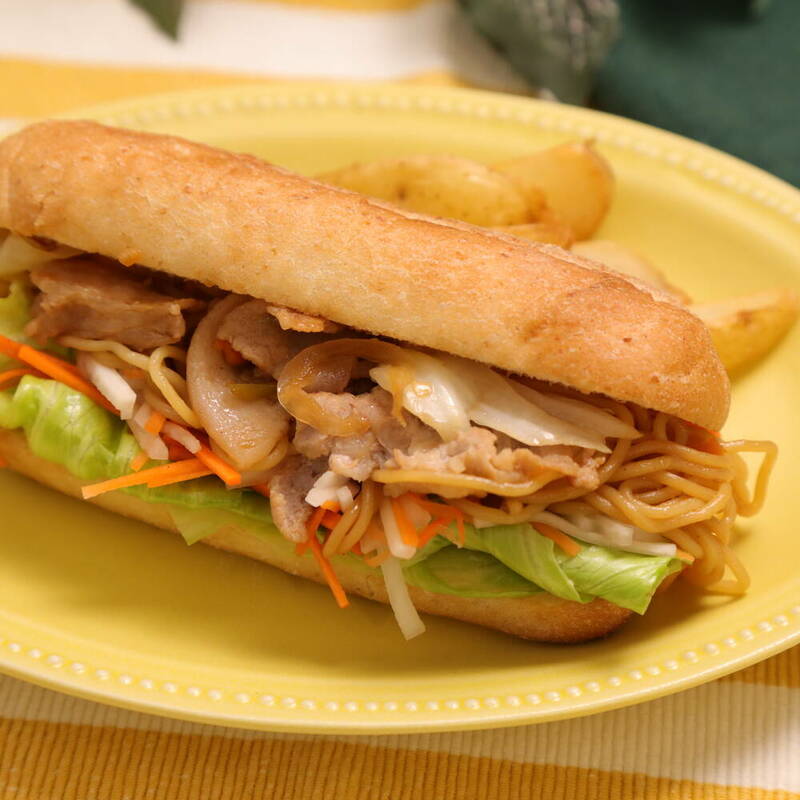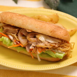 豚バラ肉は4cm幅に切る。焼きそばは袋に切り込みを入れ、電子レンジ(600W)で1分加熱する。