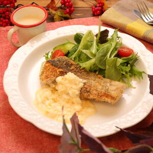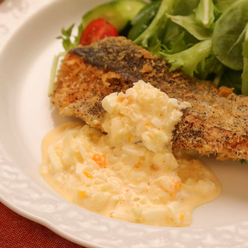 鮭はペーパーで水分をしっかりと除き、塩、こしょう(分量外)をふる。【B】【C】を混ぜ合わせる。