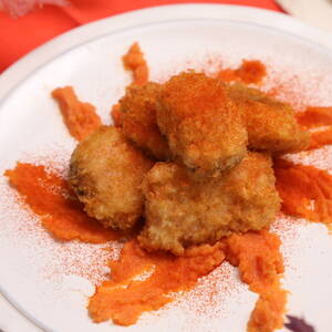 中温で熱したサラダ油で全体が狐色になるまで揚げ、油を切る。