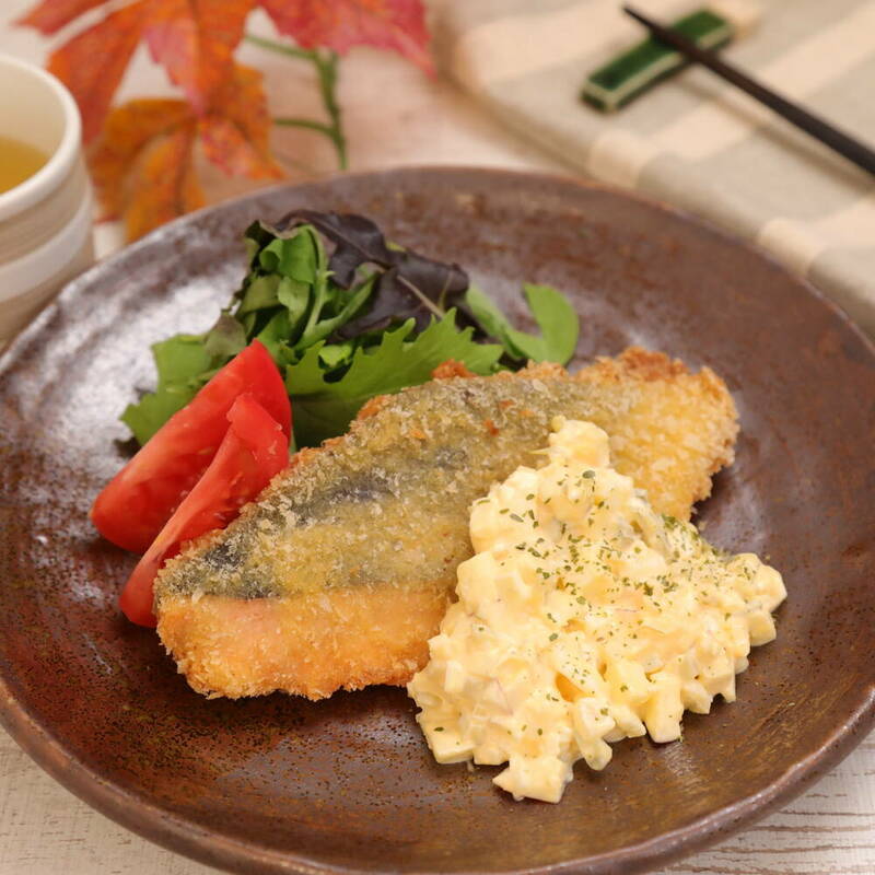 器にベビーリーフ、<9>、サーモンフライを盛り付け、<8>をかける。パセリをふる。