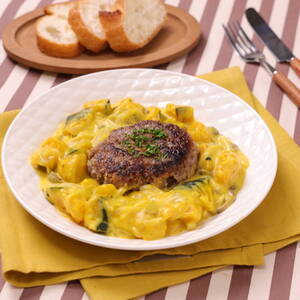 器にハンバーグを盛り付けてシチューをかけ、刻んだパセリを散らす。