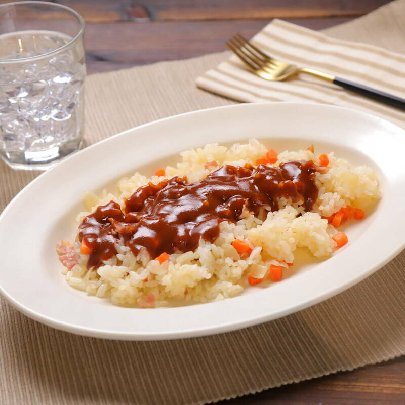 小鍋に【A】を合わせて中火にかけ、半量になるまで煮詰める。デミグラスソースを加えて混ぜ合わせる。