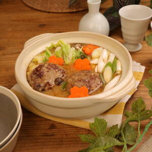 土鍋に【B】、にんじんを入れ、弱めの中火にかける。ひと煮立ちしたら<5>を入れ、白菜、しめじ、長ねぎを入れる。