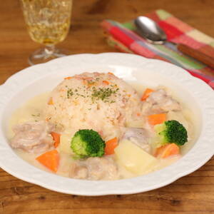 玉ねぎは薄切りにする。にんじん、じゃがいもは皮をむいてひと口大に切る。鶏肉は3cm角に切り、塩こしょう少々(分量外)をする。