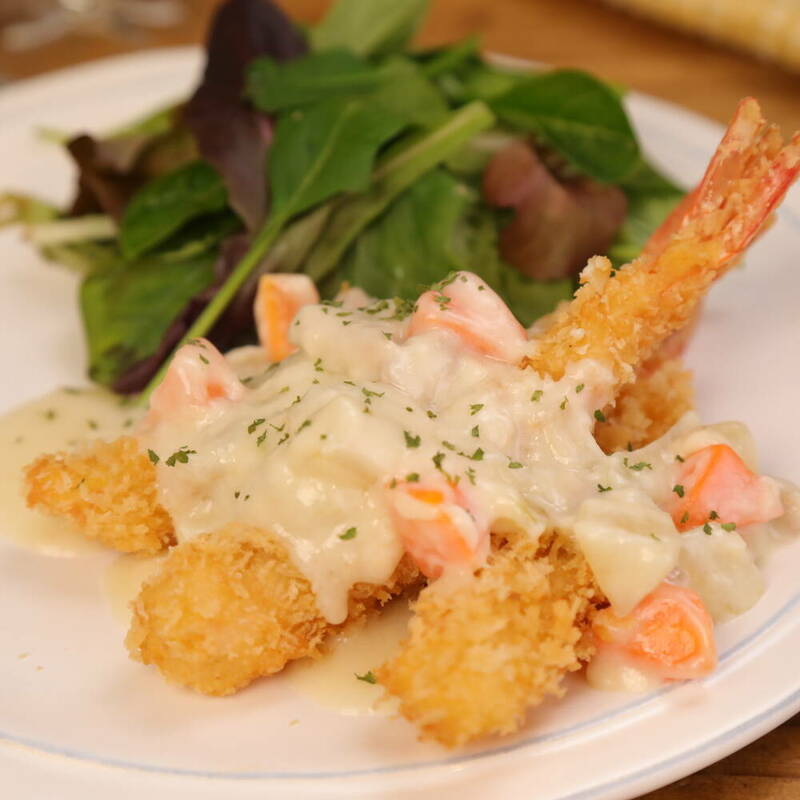クリームシチューエビフライ