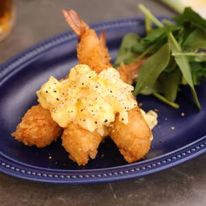 エビフライに<4>をかける。粗びき黒こしょうをふる。