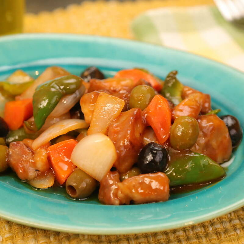 玉ねぎがしんなりしたらにんじん、オリーブを加えてさっと炒め合わせる。【B】を加えて混ぜながらひと煮立ちさせる。
