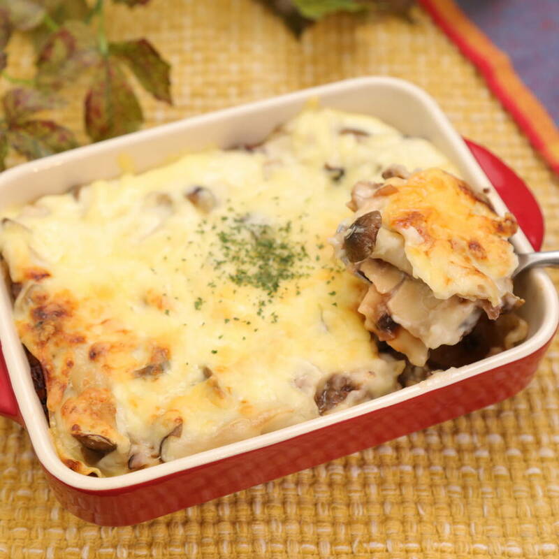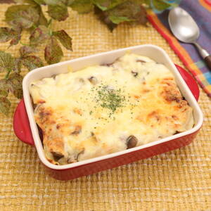 耐熱皿にバター(分量外)をぬりラザニアをひき<7>、<4>を順に広げながらのせる。