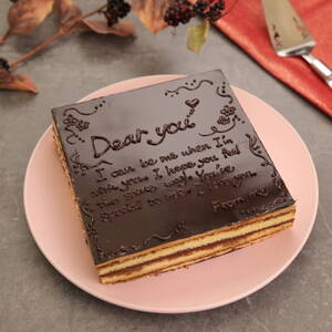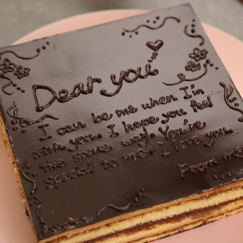 <10>に塗り広げ、冷蔵庫で冷やし固める。(〜5分)チョコペンを溶かし、お好みのデコレーションをする。