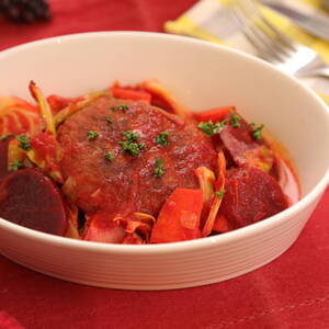 ひと煮たちしたらふたをし、6~7分ほど煮込む。器に盛り付けてパセリを散らし、お好みで生クリームを回しかける。