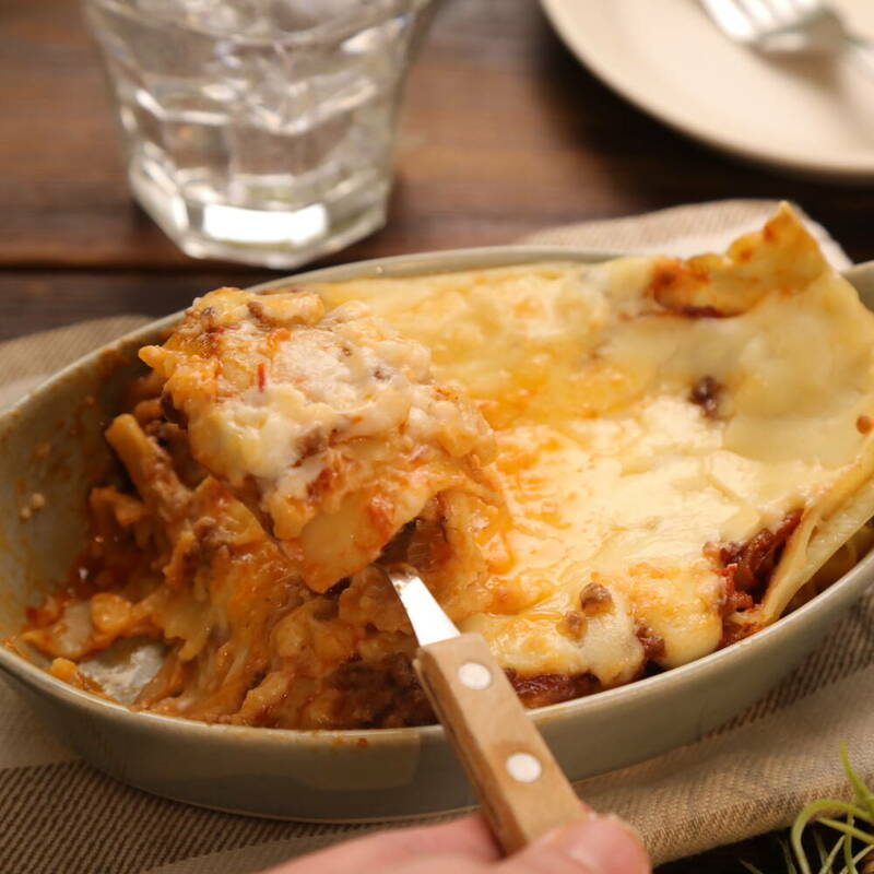 鍋に【A】を沸騰させ、ラザニアを表記時間どおり茹でる。