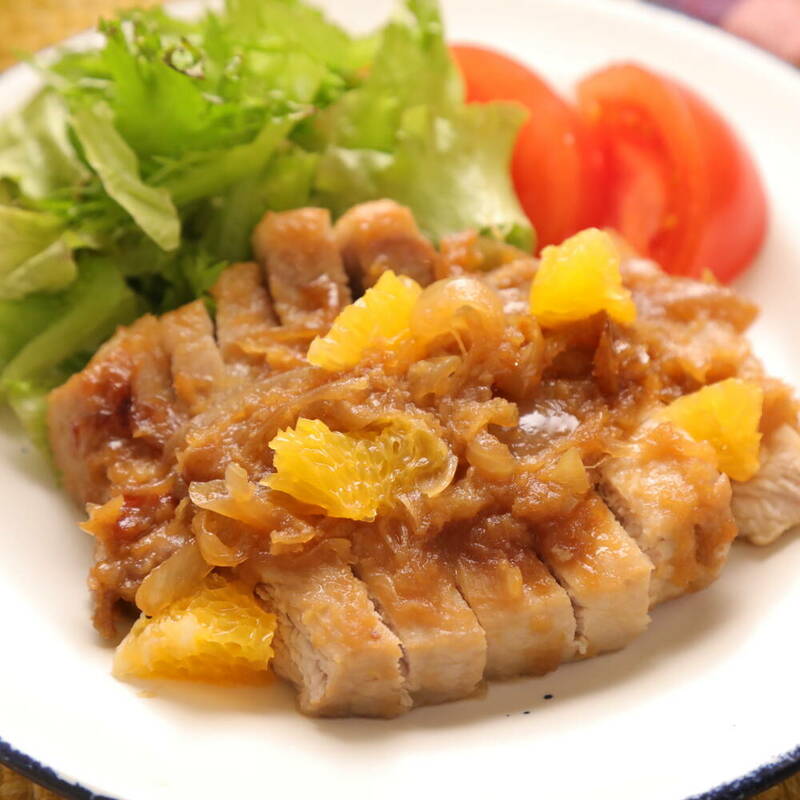 【A】、でこぽんの果汁、すりおろした玉ねぎ、しょうがを混ぜ合わせておく。