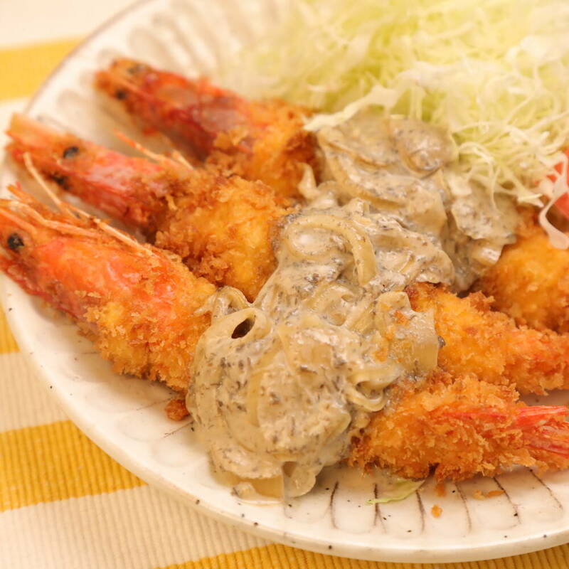 薄力粉、溶き卵、パン粉の順に衣をつけ、中温に熱したサラダ油で揚げる。きつね色にカラッと揚がったら油を切る。
