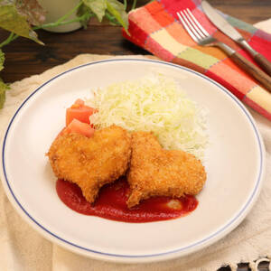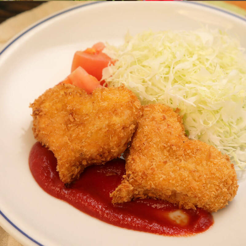 卵にくぐらせ、パン粉をつけ、中温に熱したサラダ油できつね色になるまで揚げる。