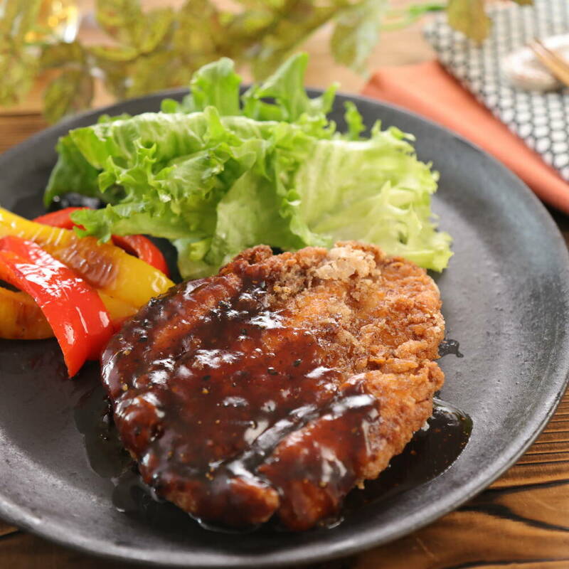 【黒七味ソース】小鍋にみりん、酒、しょうゆ、水、片栗粉を入れ、とろみが出るまで加熱する。