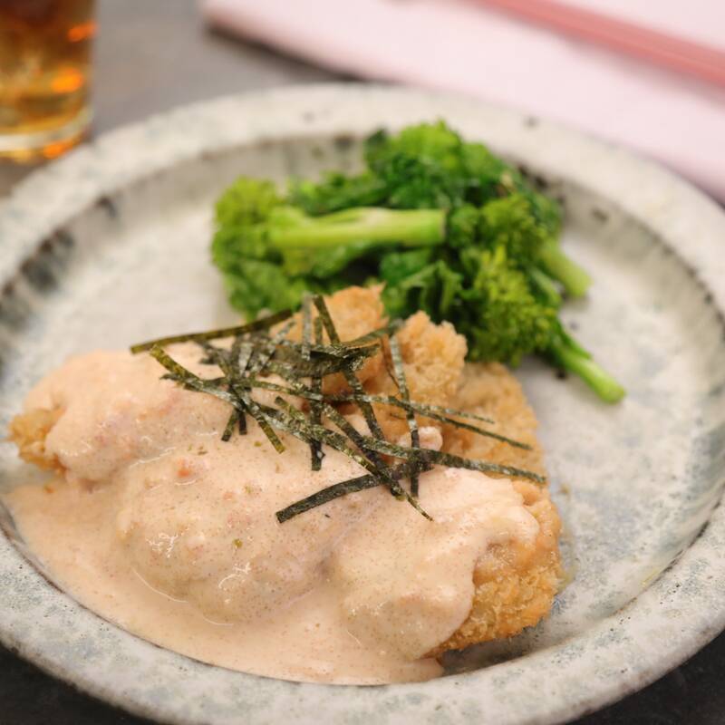 【バッター液】の材料をよく混ぜ合わせる。<1>をバッター液にくぐらせ、パン粉をまぶす。