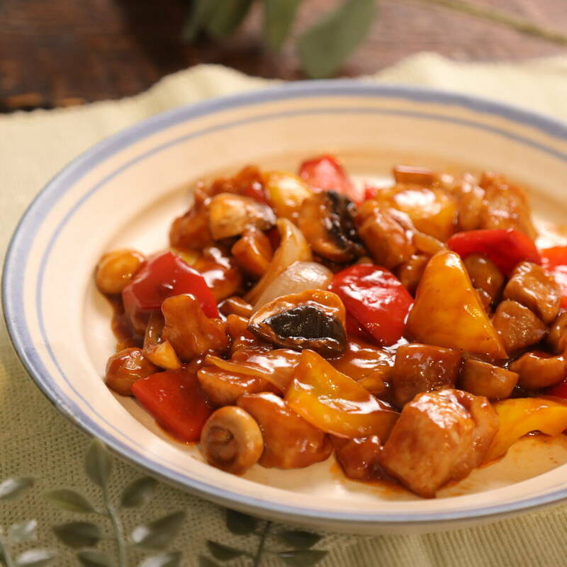 玉ねぎは2cm幅のくし切りにする。パプリカはひと口大の乱切りにする。マッシュルームは石づきを落として半分に切る。
