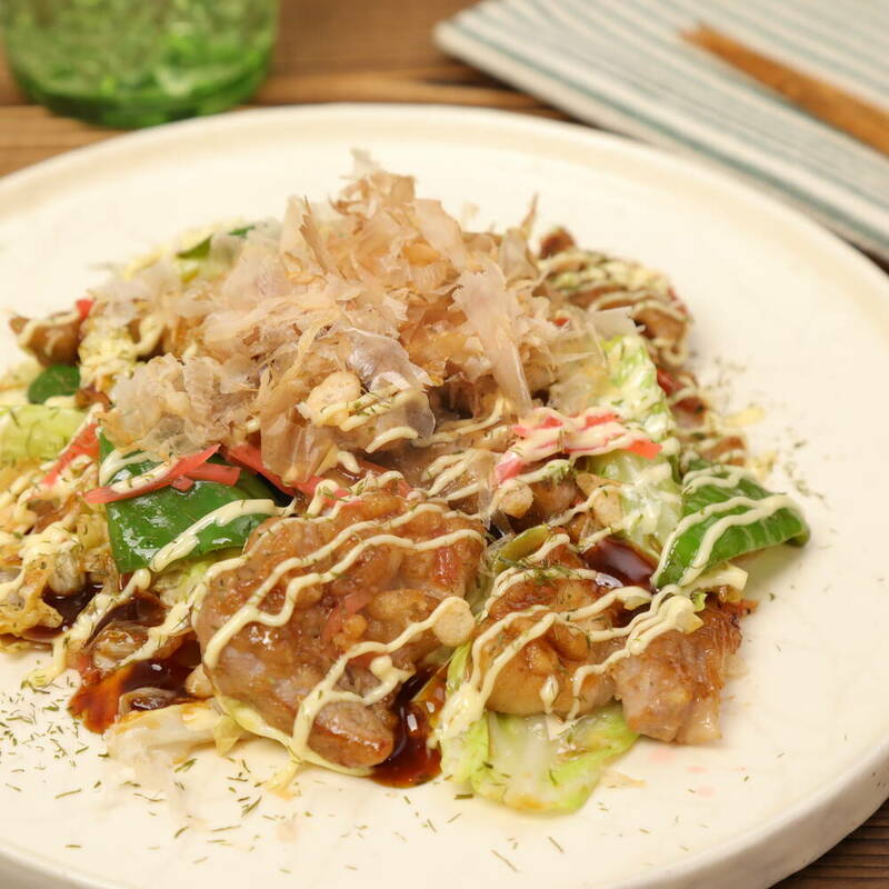 器に盛り付け、マヨネーズ、青のり、かつおぶしを散らす。