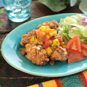 鶏肉に<4>をまぶし、中温に熱したサラダ油で5~6分ほど揚げる。
