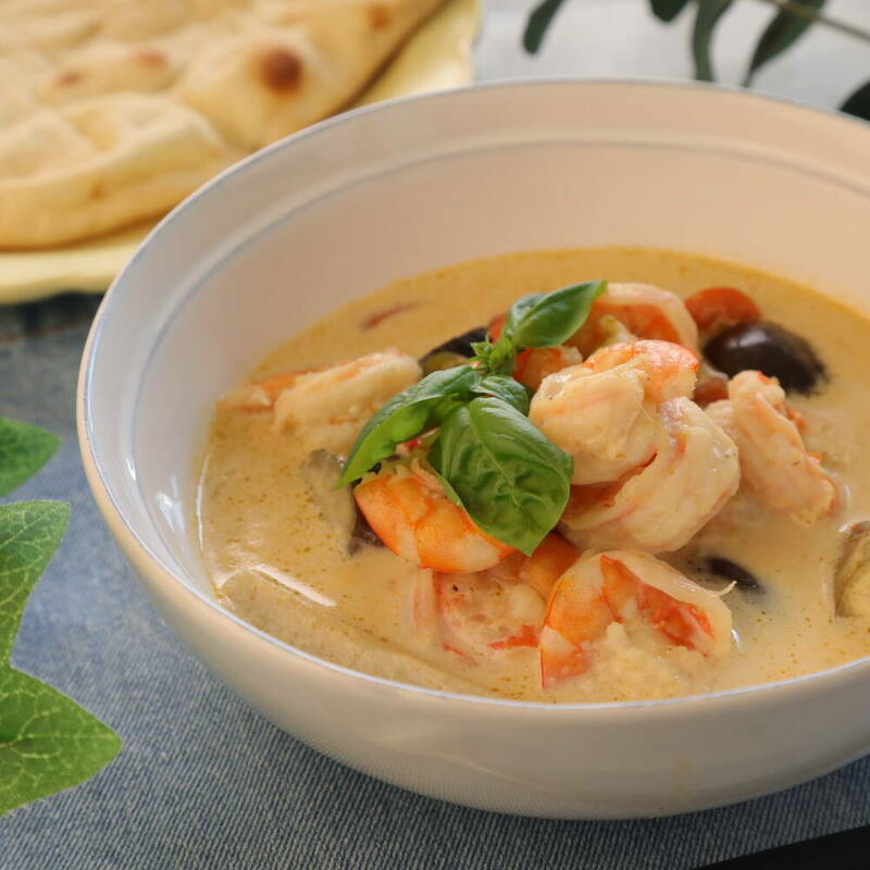 フライパンをキッチンペーパーでさっと拭き、オリーブオイルを中火で熱し、グリーンカレーペーストを炒める。