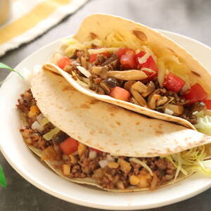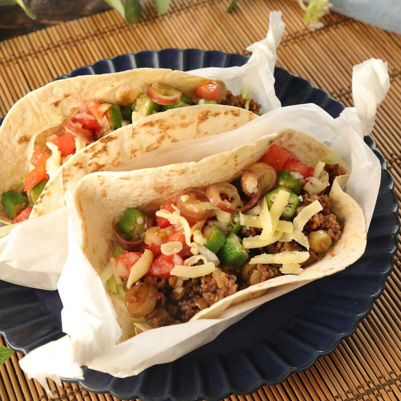 ひっくり返したらフライ返しなどで押しつぶしながら1〜2分ほど加熱する。冷める前に麺棒などに巻き付けタコスの形を作る。