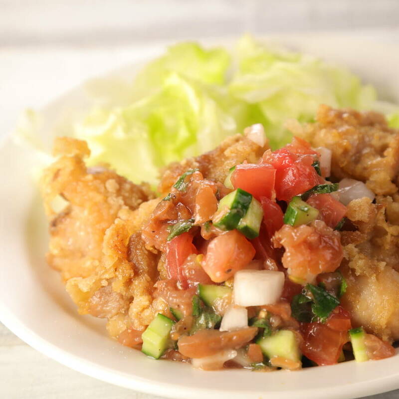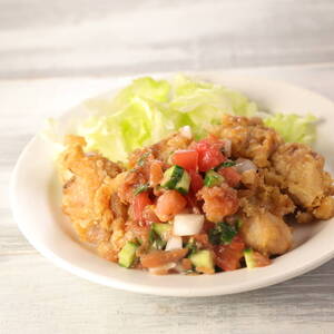 器に唐揚げを盛り、<2>の梅サルサソースをかける。