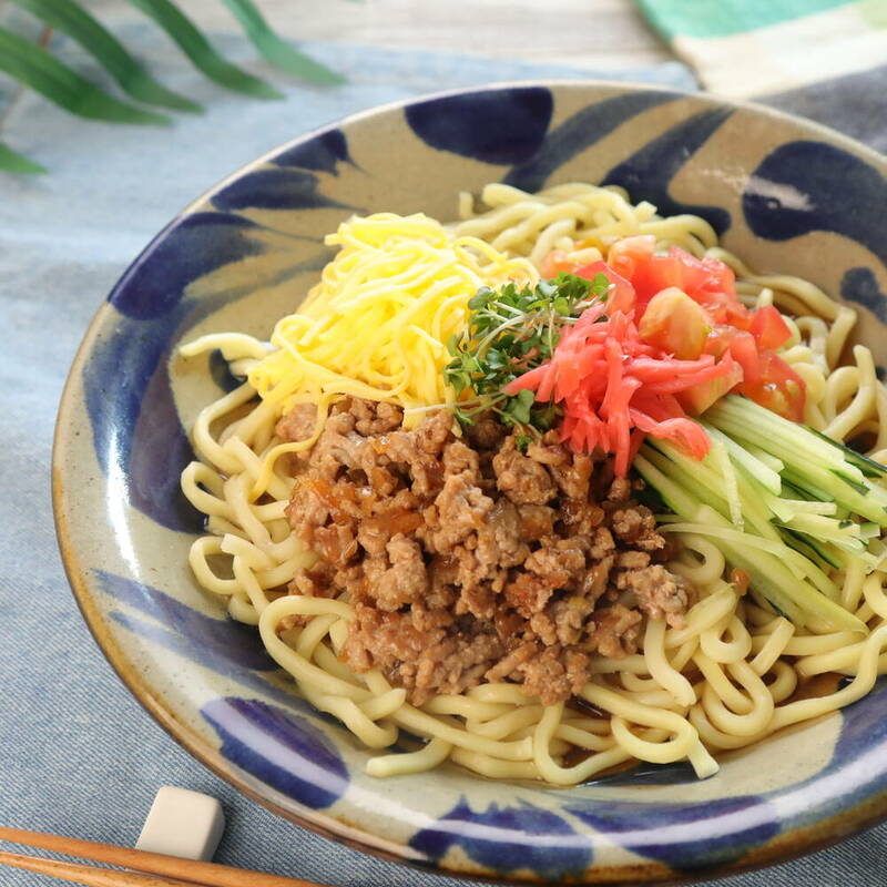 <6>、錦糸卵、トマト、きゅうりを盛り付ける。お好みでかいわれ大根、紅生姜を添える。