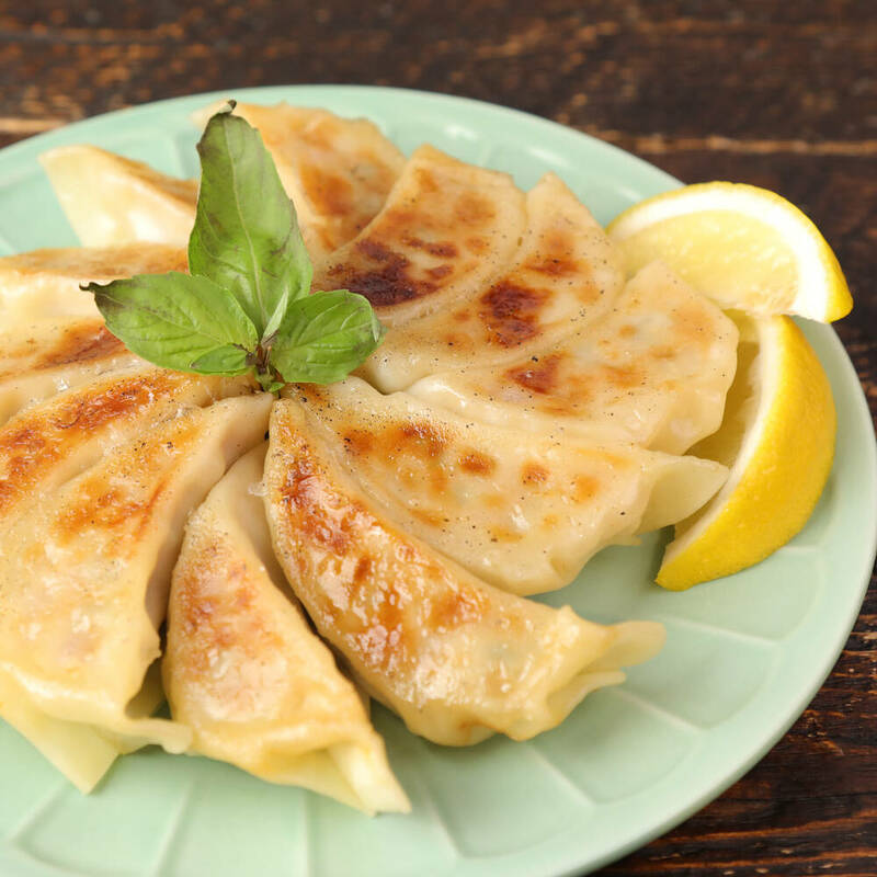 餃子の皮の中心に<3>をのせ、その上にバジルをのせて、まわりに水(分量外)を付け、ひだを作りながら包む。※バジルが大きい場合は、折りたたんだり、ちぎって入れて下さい。