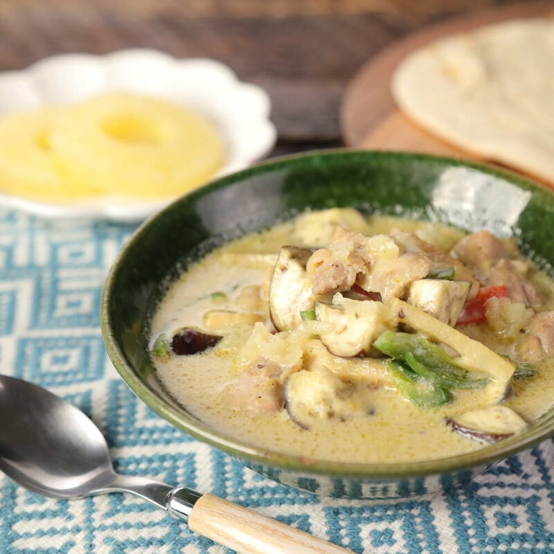 フライパンにオリーブオイルを引き、グリーンカレーペーストを加え、炒める。