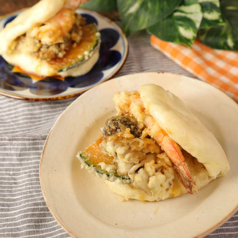 材料を全て<5>にくぐらせ180℃の油で軽いきつね色になるまで揚げる。(野菜類→魚介類の順で)