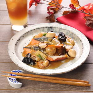 鮭は塩少々(分量外)をまぶし、水分が出てきたらペーパータオルで拭き取る。きくらげは湯(分量外)で戻しておく。