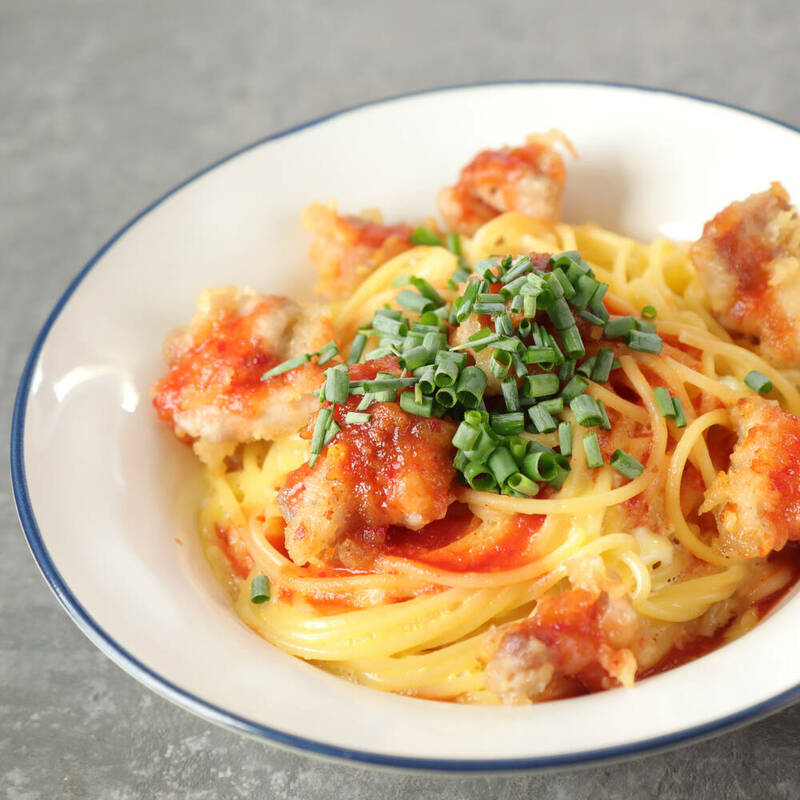 秋刀魚の竜田揚げバター醤油パスタ