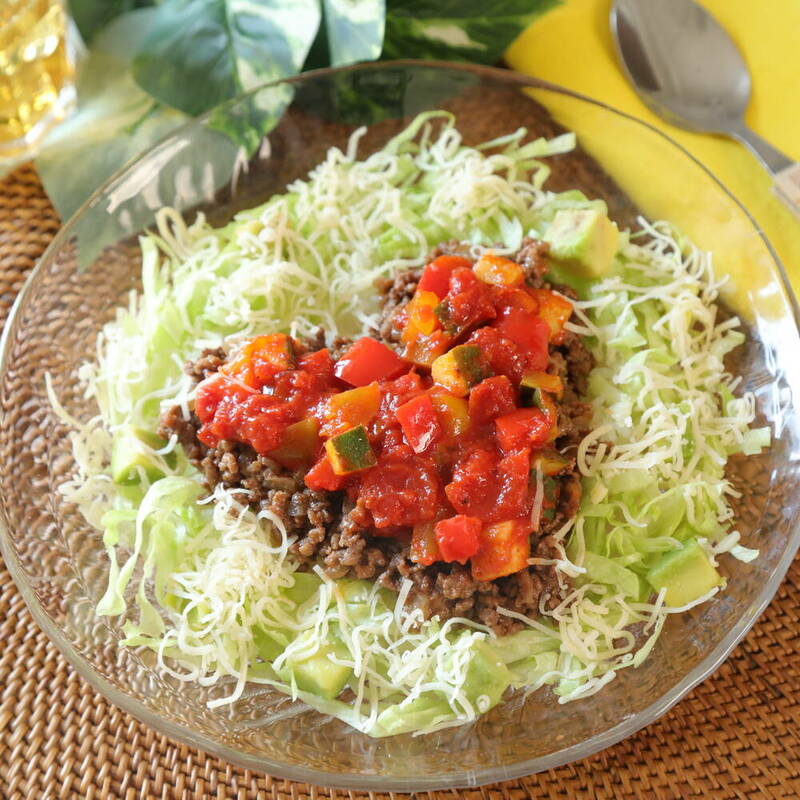 器にごはん、レタス、アボカド、チーズを散らす。中心に<3>と<7>を盛り付ける。