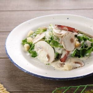 周りに<3>を盛り付ける。生クリームを回しかけ、パセリを散らす。