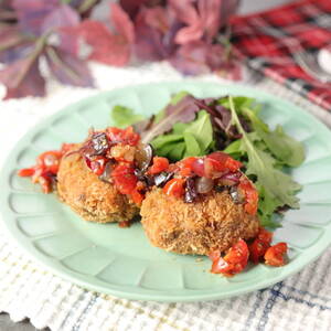 鍋などにサラダ油を入れて熱する。パン粉や箸などで温度を確かめ170℃になったら<5>の形を整えて静かに入れる。