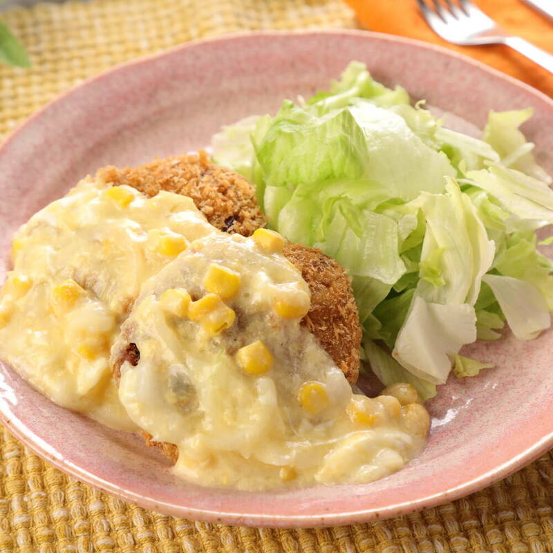小鍋に玉ねぎ、とうもろこし、水、生クリーム、鶏がらスープを入れて弱火にかける。