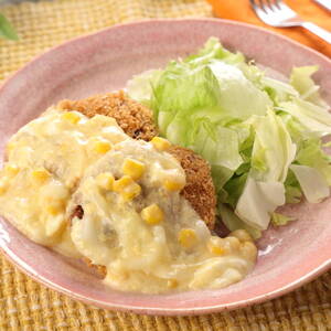 鍋などにサラダ油を入れて熱する。パン粉や箸などで温度を確かめ170℃になったら<5>の形を整えて静かに入れる。