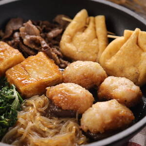 卵を器に割り入れ、溶いておく。全体に火が通ったら、好きな具材を溶き卵をにつけて食べる。