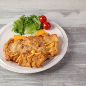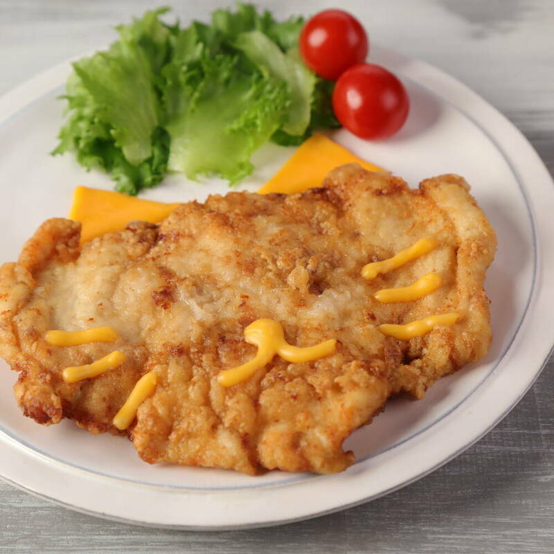 【チェダーチーズソース】1枚は猫耳用として使用する。三角にカットする。