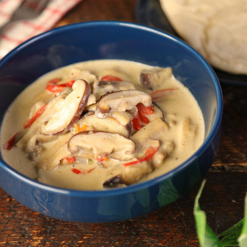 香りが立ってきたらココナッツミルクを少しずつ加え、溶きのばす。ココナッツミルクが全量入ったら、<4>を加える。弱火にして5〜7分、蓋をして煮込む。