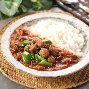 【盛り付け】器にご飯と、<5>を盛り付ける。上に<8>を山高にのせ、白ごまをふる。