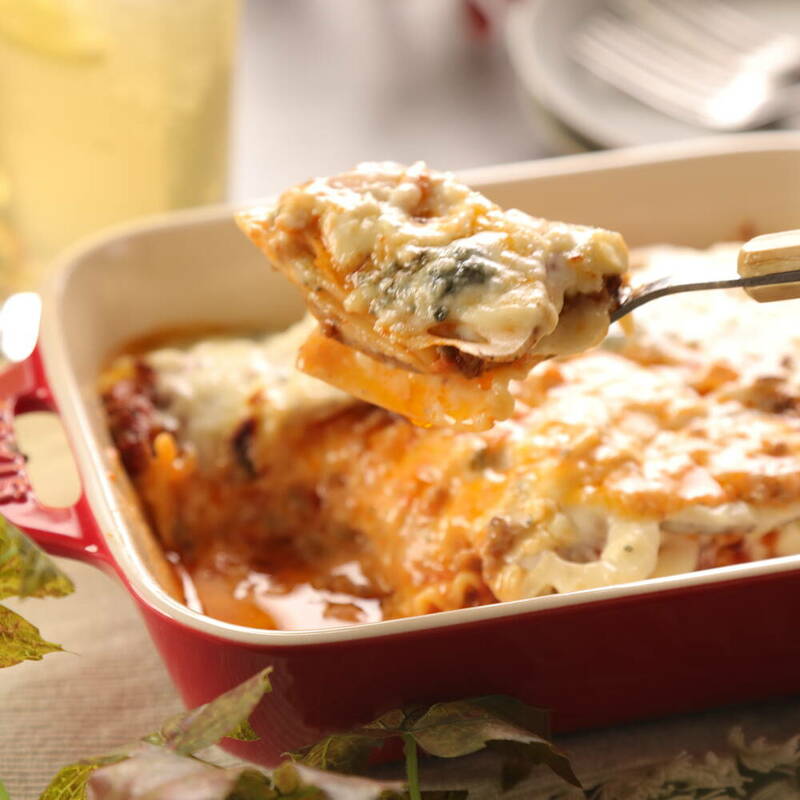耐熱皿にオリーブオイルを塗り、ラザニア、<4>、レンコン、<2>を順に広げながらのせる。これを4層積み上げる。