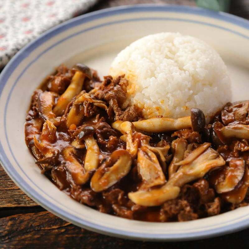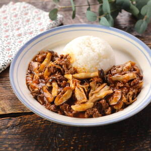【盛り付け】器にご飯と、<4>を盛り付ける。