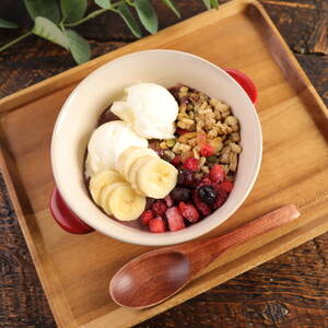 器の半分に<2>を盛り付け、ミックスベリー、グラノーラをのせる。