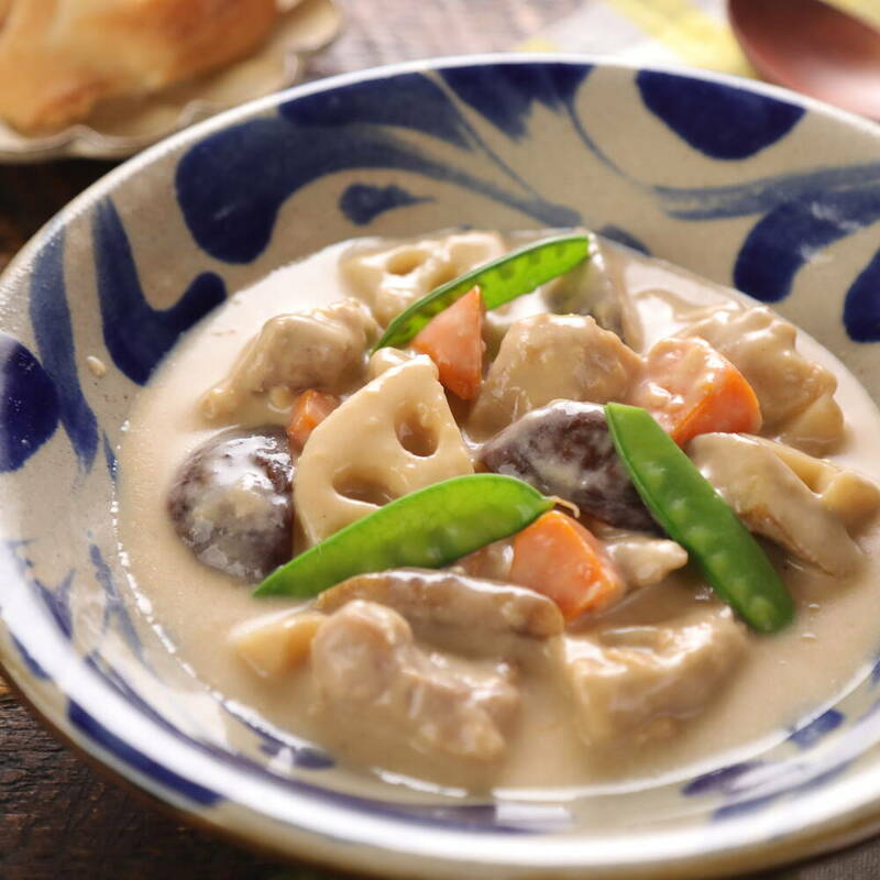 フライパンにサラダ油を引いて中火で熱し、鶏肉の皮面を下にして並べ、塩こしょう少々(分量外)する。焼き色がついたられんこん、ごぼうを炒め合わせる。