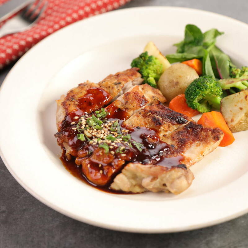 フライパンにサラダ油を入れ中火で熱し、<3>を皮目から焼く。ヘラなどで鶏肉を押し付けながら焼き皮をパリっとさせる。