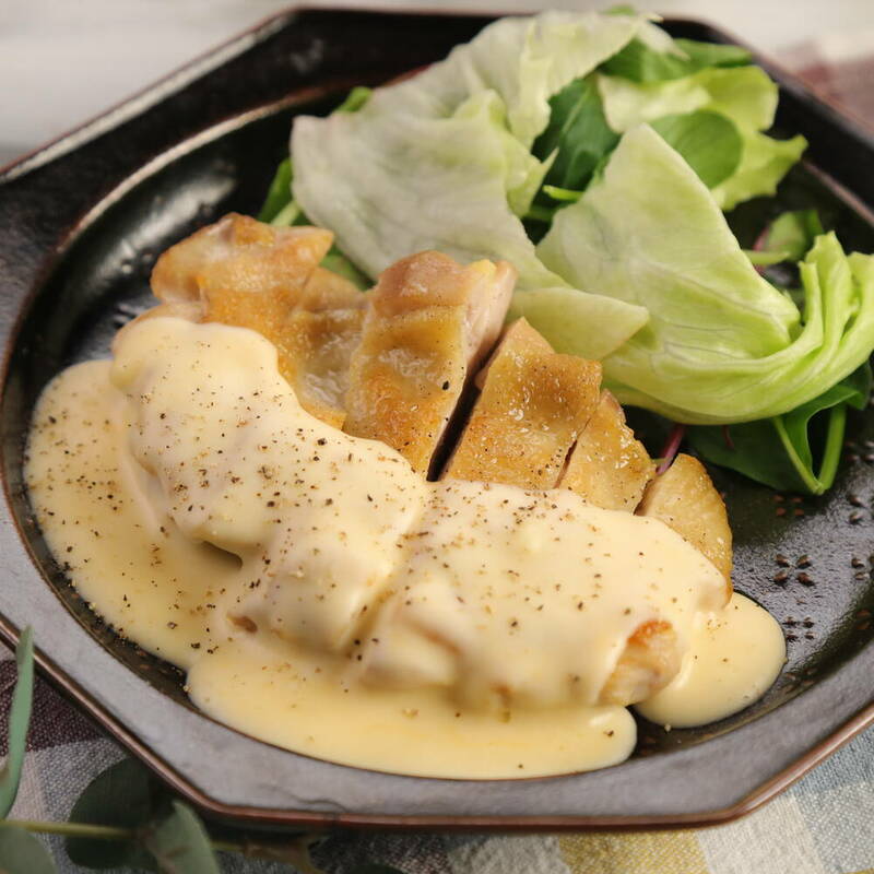 鶏肉は余分な脂を取り除く。厚い部分に軽く切れ込みを入れる。塩、粗びき黒こしょうを振り、よくもみこむ。